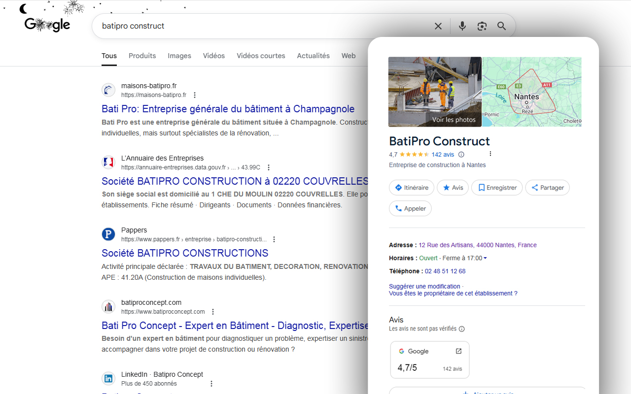 Votre site est généré à partir de votre fiche Google. Aucun effort requis de votre part. Il est optimisé pour le référencement local et prêt à l'emploi.